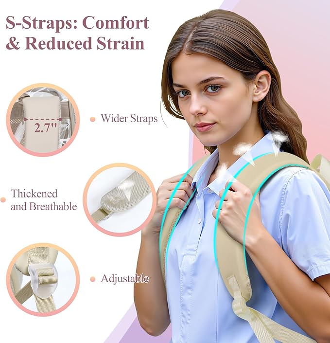 - Comfortable for All-Day Carry: The front of the shoulder strap is made of PU Leather, showing a unique style, and the back is equipped with a Thick Pad to ensure comfort and reduce stuffiness. The Ergonomic S-straps reduce strain, making it ideal for students 12+