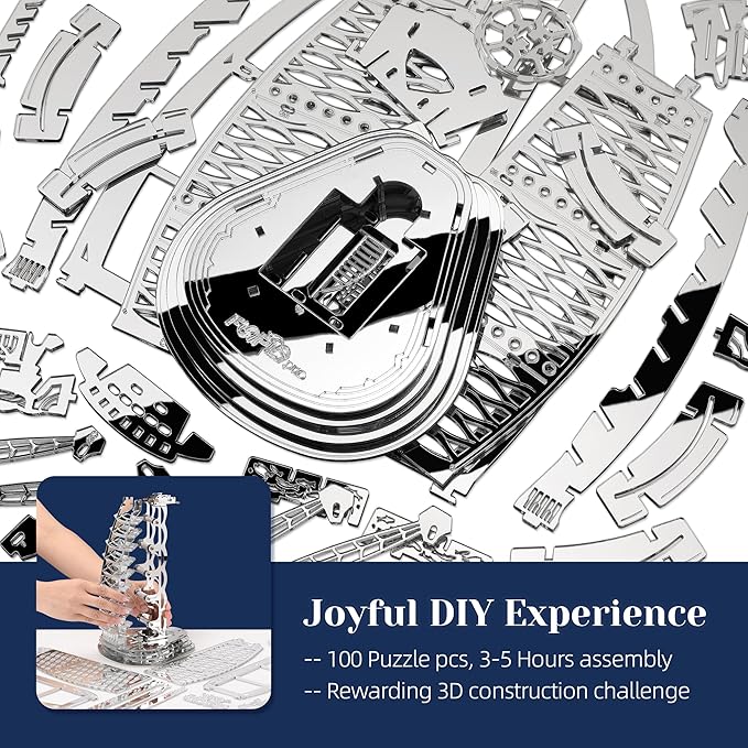- 【Engaging and Rewarding Assembly】Featuring 94 pre-cut acrylic pieces for the structure and 6 pre-cut metal pieces for the frame and LED setup, this 3D puzzle offers a stimulating and enjoyable challenge. Take pleasure in focused, relaxing moments as you build this stunning décor.