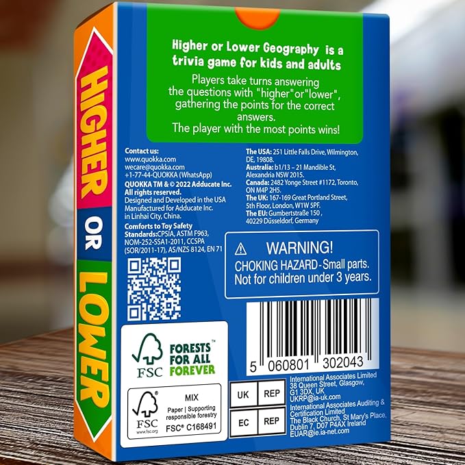 QUOKKA Trivia Board Games for Kids and Adults - Version V2.0 - Family Night Geography Games 4xSet Higher or Lower Trivia Cards | Guess Fun Questions | 2 + Players - Challenge Your Geography Knowledge