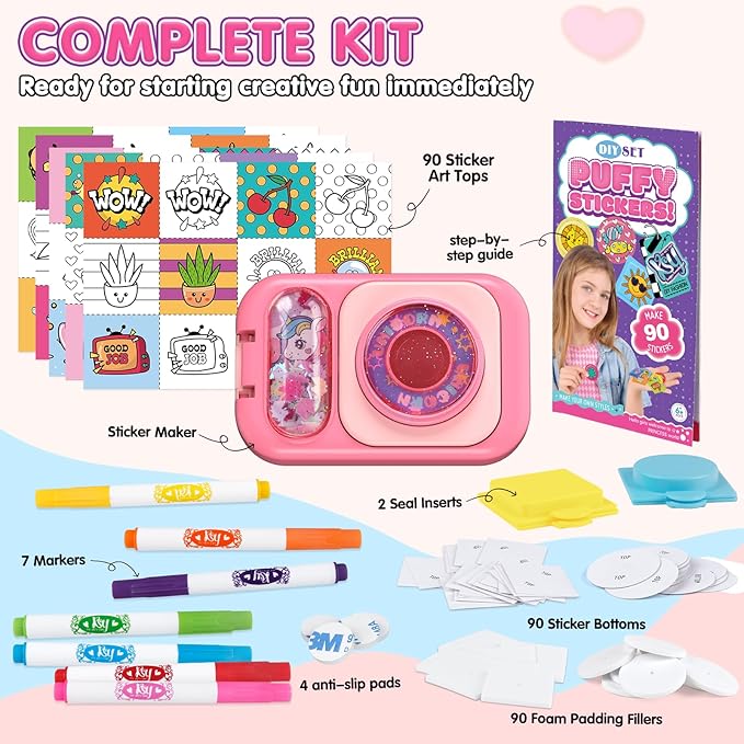 Puffy Sticker Maker Kit for Kids - Make Your Own 3D Stickers Ages 6-10 - Create DIY Craft Machine Unicorn Arts and Crafts Kits for Girls & Boys (90 Stickers)