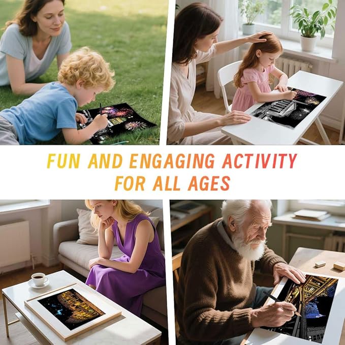 - 【4. Gallery-Worthy Art Pieces】Inspired by real cityscapes, each scratch art reveals astonishingly realistic details. Relive memorable journeys through creation! Every finished masterpiece becomes instant wall decor—elegant framed art or heartfelt handmade gifts, making every piece a treasured keepsake.