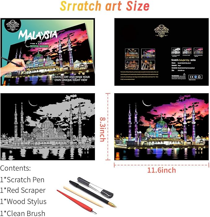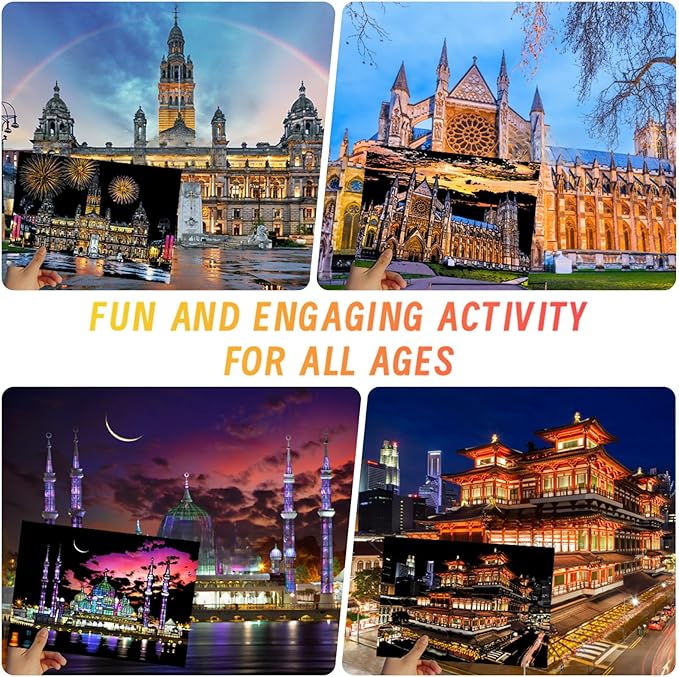 - 【4. Gallery-Worthy Art Pieces】Inspired by real cityscapes, each scratch art reveals astonishingly realistic details. Relive memorable journeys through creation! Every finished masterpiece becomes instant wall decor—elegant framed art or heartfelt handmade gifts, making every piece a treasured keepsake.