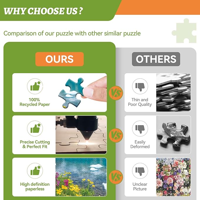- Satisfying Fit & Feel: Crafted from premium, eco-friendly cardboard, each piece of this jigsaw puzzle is cut with precision and finished with a low-glare matte coating. The smooth interlocking fit enhances your overall puzzle experience.