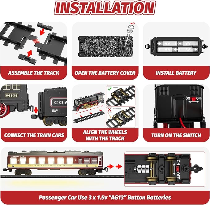 - 【The Perfect Christmas Gift】During the holiday season,you can also place the Christmas train set under the Christmas tree to add to the festive atmosphere and make your Christmas even happier.This is a great gift for the birthdays,Christmas and any party gifts of 5-7-year-old boys and girls.
