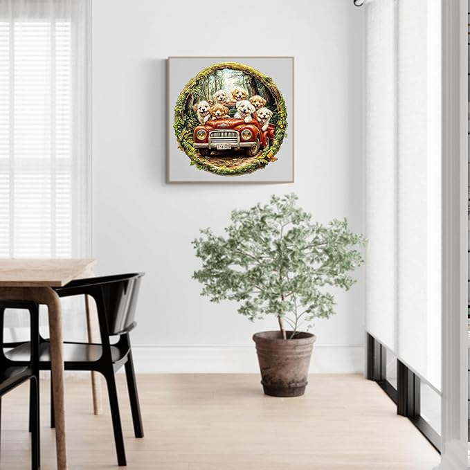 Wooden Puzzles for Adults - 100 Pieces Dog Truck Wooden Puzzle - Unique Animal Shape Wood Cut Puzzles - Eco-Friendly Home Office Decor (S-8.5 * 8.5in)