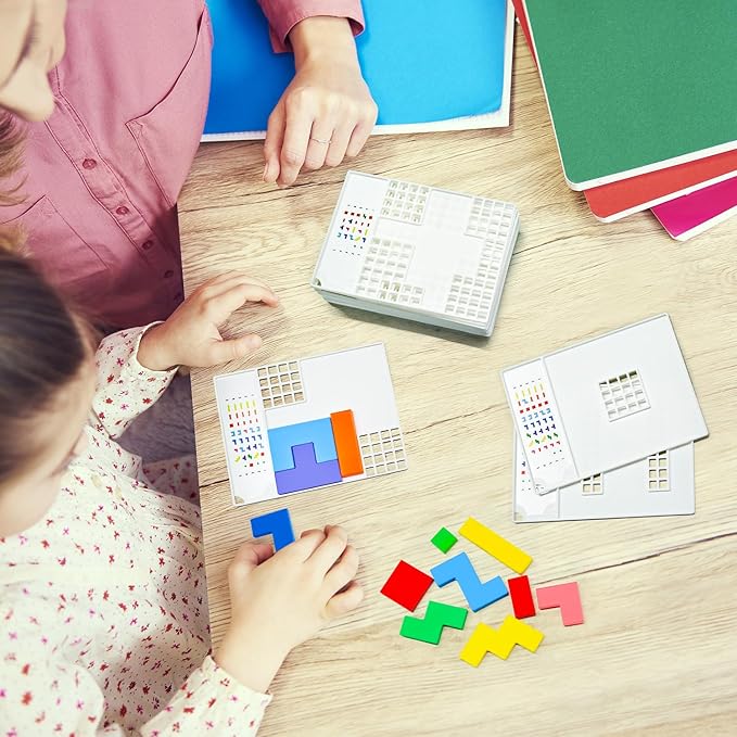 - 【3D Brain-teasing Puzzle Game】There are 12 pieces of blocks in different shapes and colors, 20 pieces of plastic puzzle bases with 100 puzzles, and a product user manual. All the brain game items are packaged in a premium plastic box for portable use and easy storage. Get ready for a fun and brain-tickling puzzle adventure to experience the satisfaction of assembling each piece to finish every puzzle with your imagination and creativity.