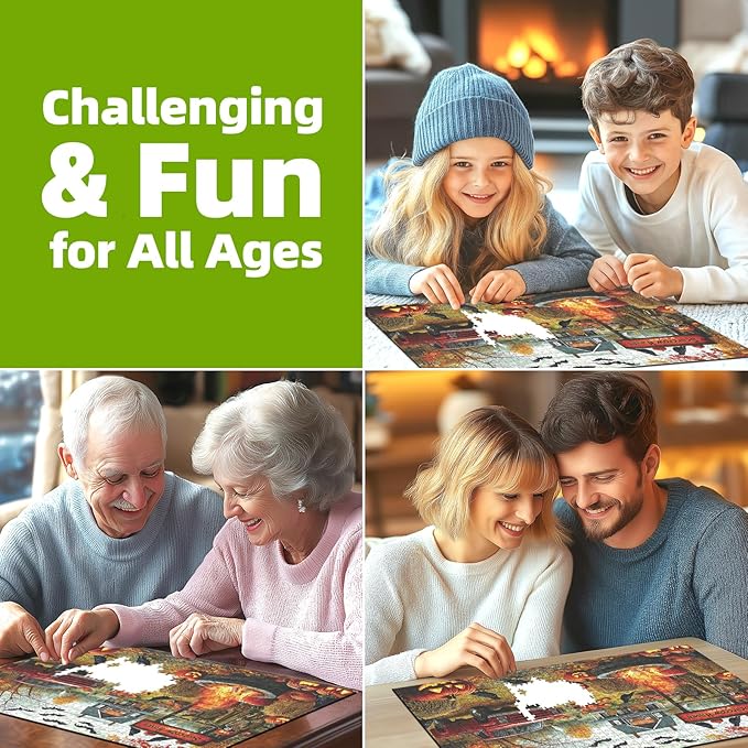 - ๐ฎ Bewitching Challenge for All: Halloween adult puzzles 1000 pieces is A thrilling brain-teaser for solo puzzlers or a fun group activity during Halloween gatherings. Trade tricks for treats as you piece together this enchantingโand just a little bit spookyโautumn masterpiece!(Missing a piece? Contact usโweโll summon a replacement from the pumpkin patch!)
