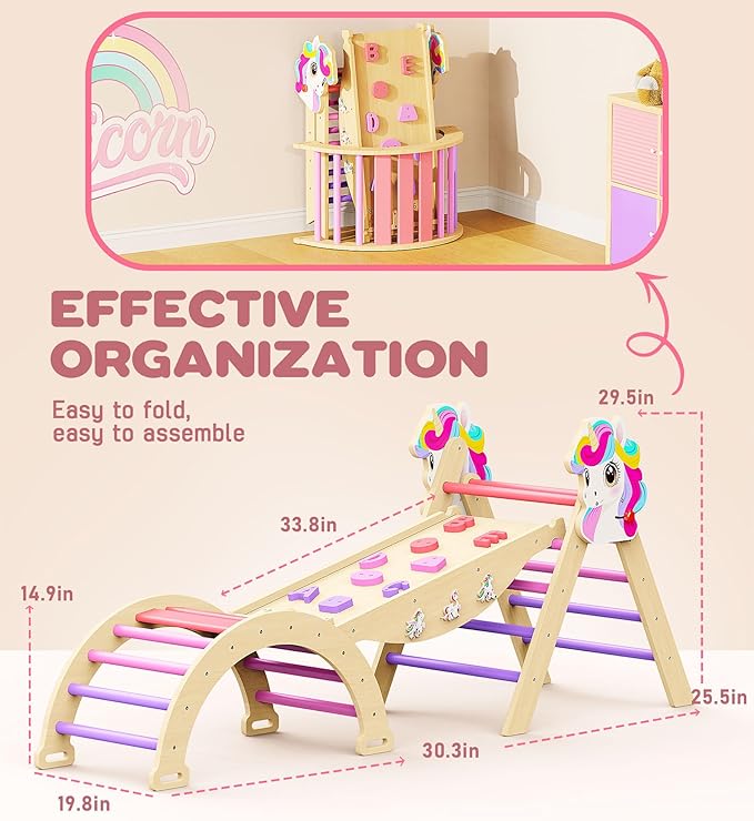 - Fun & Activity Center: Tired of toys your child ignores after five minutes? Our cute unicorn climbing toys features a triangle ladder, slide, and arch—offering unlimited fun. Whether solo or with friends, your child stays active and entertained all day