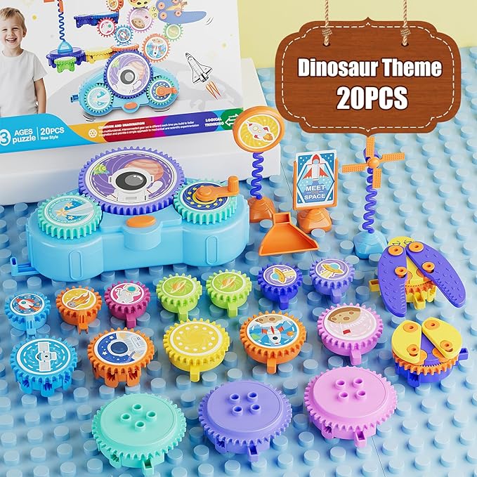 - 【Innovative STEM Gear Toy】The Fivoro gear toy features a unique interlocking structure with 20 colorful gear pieces that kids can freely assemble and combine. With exciting space capsule themes, it sparks imagination and creativity. While building, children naturally develop logical thinking, reasoning, and problem-solving skills—making it a fun and engaging introduction to STEM education for kids aged 3 and up.