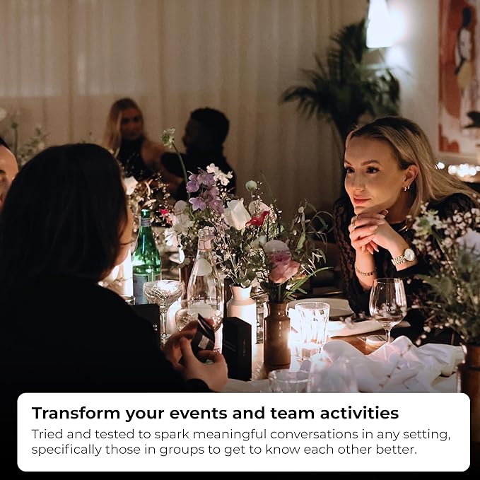 - Spark Deeper Connections Through Conversation — Whether you’re just getting to know someone or moving beyond surface talk, these cards build emotional intimacy and trust. Perfect as couples card games, family conversation cards, conversation cards for friends, and conversation cards for adults, this relationship game helps you move from small talk to meaningful dialogue where authentic connection and vulnerability create lasting bonds.