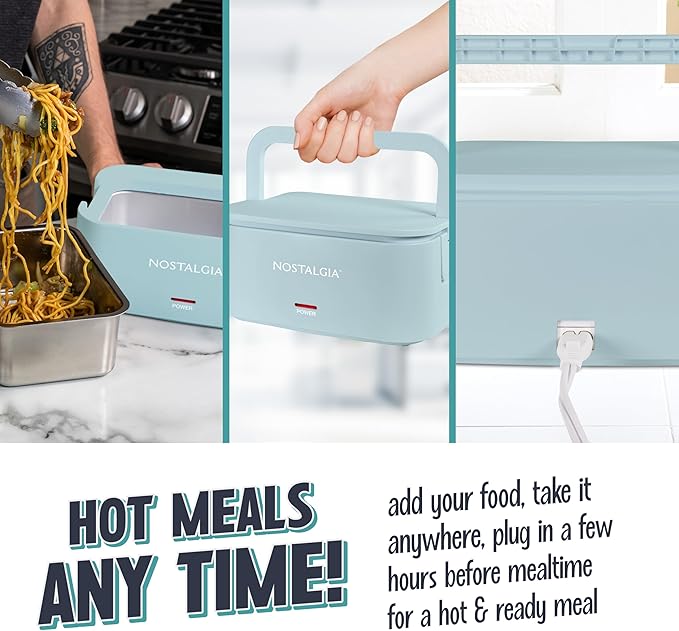 - CONVENIENT FOOD WARMER: Upgrade your meal prep with Nostalgia's self heating lunch box for adults, perfect for soup, pasta, stir-fry, and more.