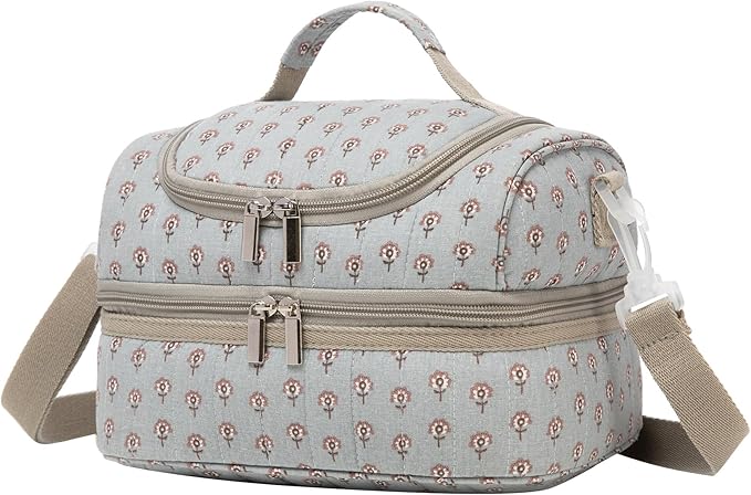 Insulated Kids Dual Compartment Lunch Bags Tote for Girls Boys Toddler Lunch Boxes Pre-School Toddler Kindergarten Picnic Camp Food Cooler Thermal with Strap (Z Blue Floral)