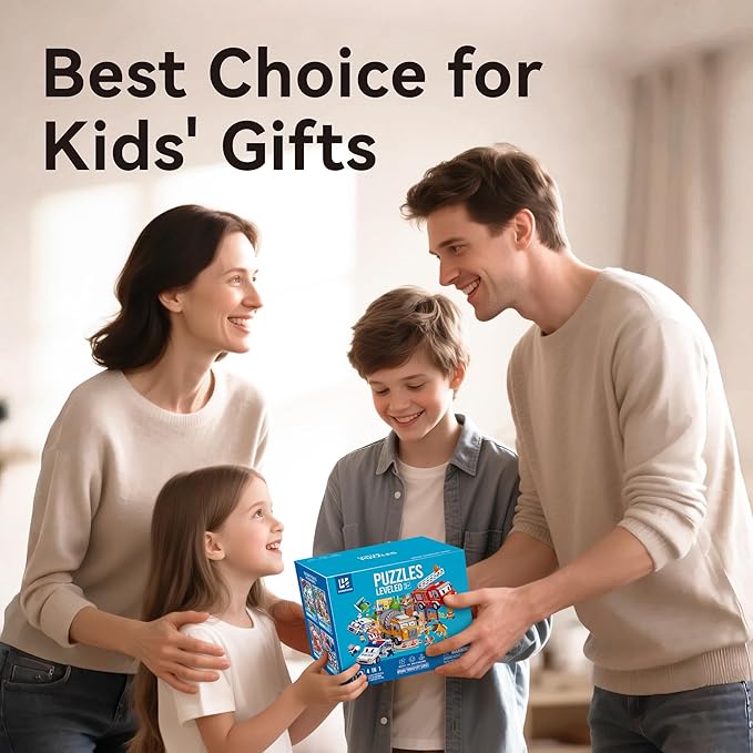 - 【4 PROGRESSIVE LEVELS】: Start with 24-piece puzzles (ages 3+) featuring bold vehicle outlines, then level up to 48 pieces! Each set teaches kids about firefighters, police officers, and other heroes – sparking curiosity about community roles while boosting problem-solving skills.