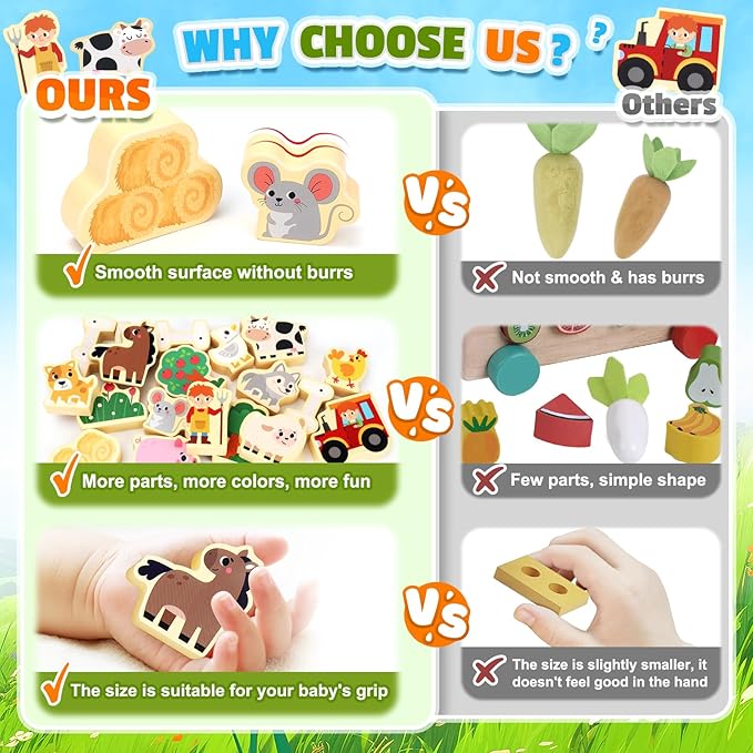 - Top-Ranked Educational Toy Gift: Wooden Montessori STEM Learning Activity Toy, Suitable for all buyers searching with the following keywords: "Montessori toys for 1-5 year olds boys" "Wooden toys for toddlers" "Sorting & Stacking Toy for kids" "Farm animal toys for boys" "Toddler boy toys age 3 4" "Birthday gfit for boys 2-4 year old".This wooden toy allows parents and toddlers to enjoy the joy of farm games