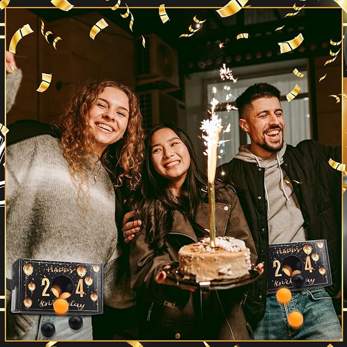 - Birthday Theme Design: the design of this twerk ball game is particularly classic; The game box is printed with golden balloons and text, matched with black and orange balls, which adds an atmosphere to family activities and friendly competition; The gift of digital stickers can help you DIY your age