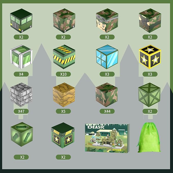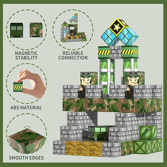 - STEM Learning Magnetic Building Blocks: Our creative military themed magnetic cubes are designed as preschool toy. Combines hands-on learning with screen-free play—helping kids develop creativity, spatial awareness. Sensory magnet toys intended to enhance their focus, hand-eye coordination, creativityand imagination