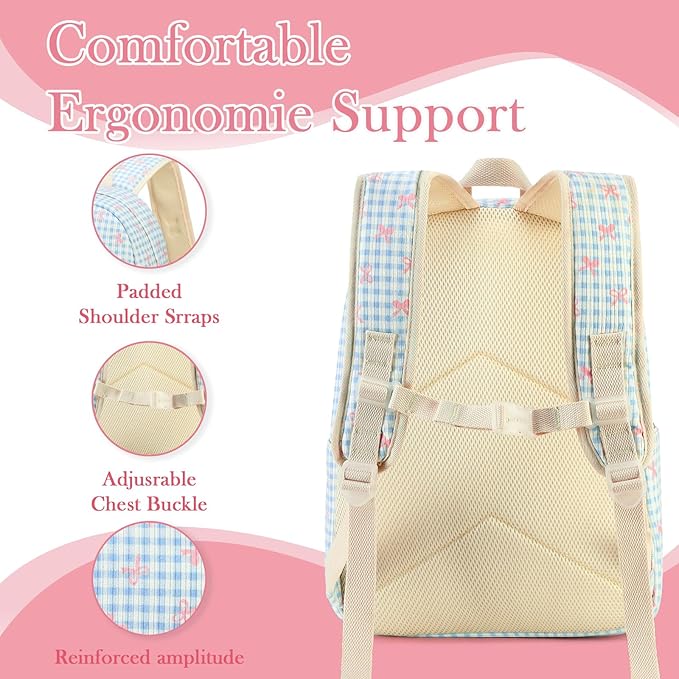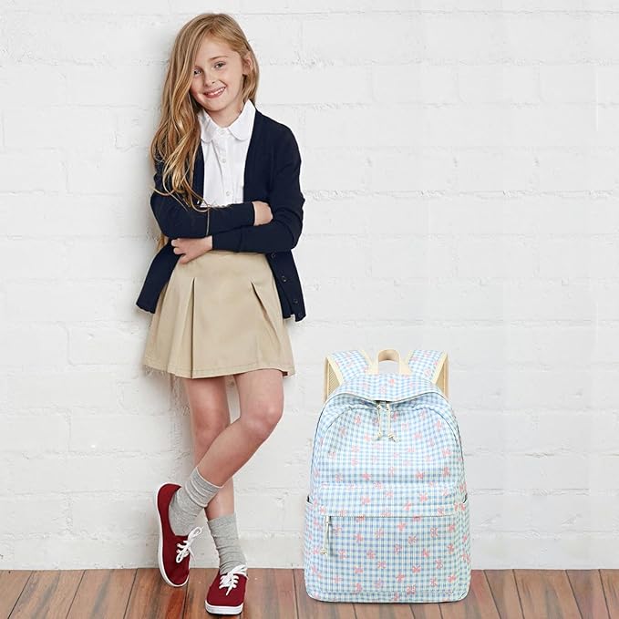 - Blue checkered backpack design: Back to school with this super cute bow backpack, it will make you kids to be the hot topic of playground for its fun, personalized and cute little dinosaur pattern , let your kids become more confident and help them adapt to kindergarten life easily, raise and capture your little one's imagination and curiosity about nature at the same time.