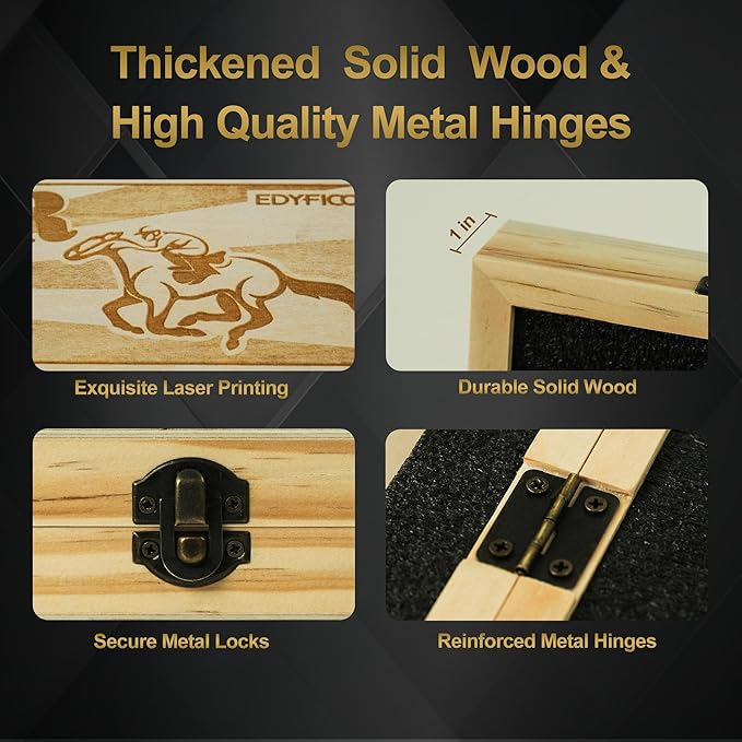 - HIGH-QUALITY MATERIALS: This horse racing game is crafted from premium solid wood with reinforced metal hinges, supporting up to 22 lbs. The laser-etched surface resists fading, and sturdy hinges open smoothly and lie perfectly flat. Sturdy enough for years of use!