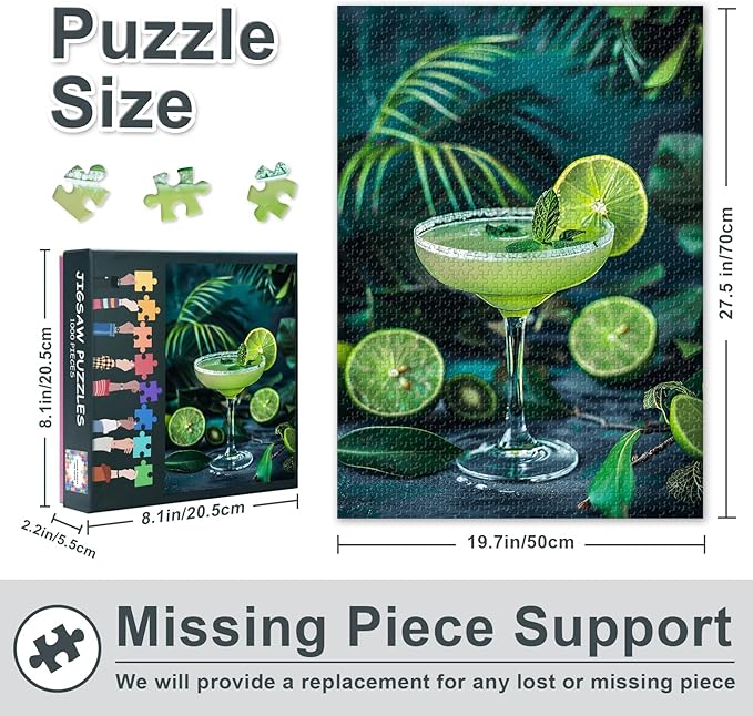1000 Piece Puzzle for Adults Cocktail Puzzle 1000 Pieces Home Wall Decoration Challenging Puzzles Suitable for Game Nights Ideal for Drink Fans & Decoration Finished Size: 70x50cm