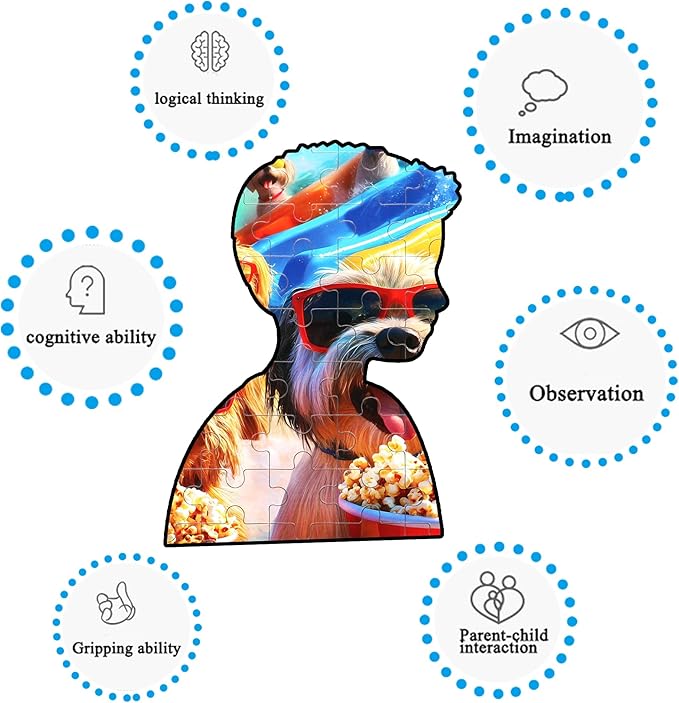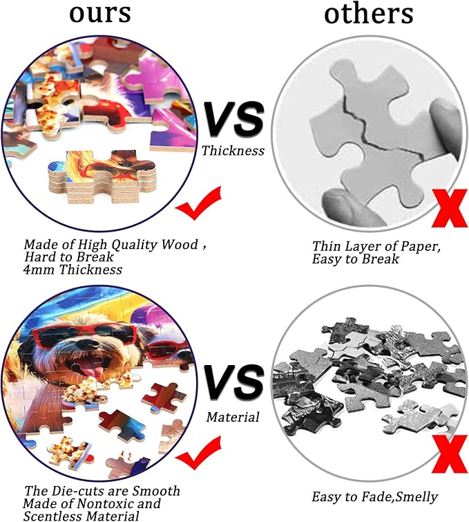 - High Quality Materials: Fun amusement park dogs puzzles are printed by eco-friendly oil, original hand-painted pictures, with bright and delicate colors, providing you with an excellent visual and high aesthetic experience. The rounded edge is safe for your little one. The puzzle pieces are carefully cut so that each piece fits together nicely.