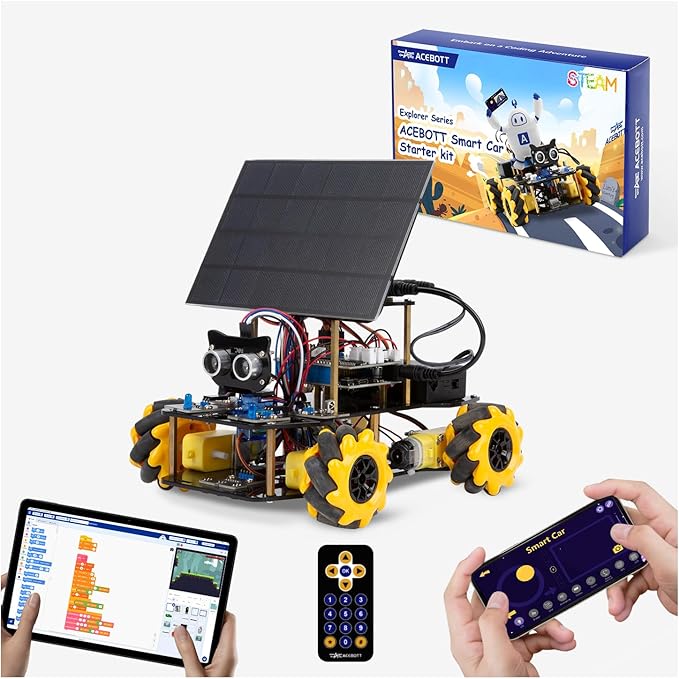 Robotics Kit for Kids Ages 8–12,ACEBOTT STEM Robot Car with Solar Powered,Compatible with Arduino & Scratch,STEM Toys for Boys Ages 8–12,App & Remote Control,Programmable ESP32,Gift for Boys and Girls