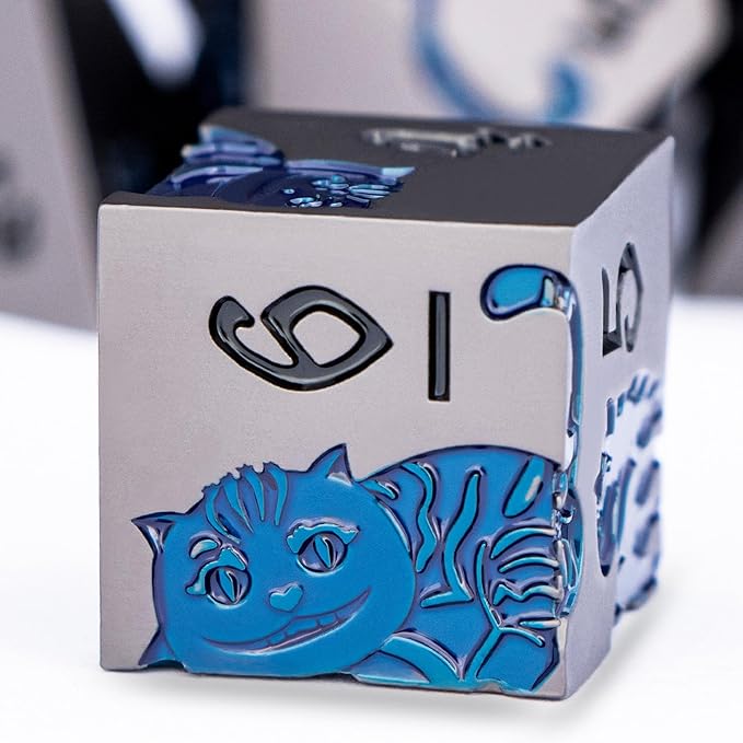 Metal DND Cat Dice 7PCS Polyhedral RPG Dice Set with Gift Case for Dungeons Dragons Role Playing Game, D and D Dice D6 D8 D10 D12 D20 D% (Grey Blue)