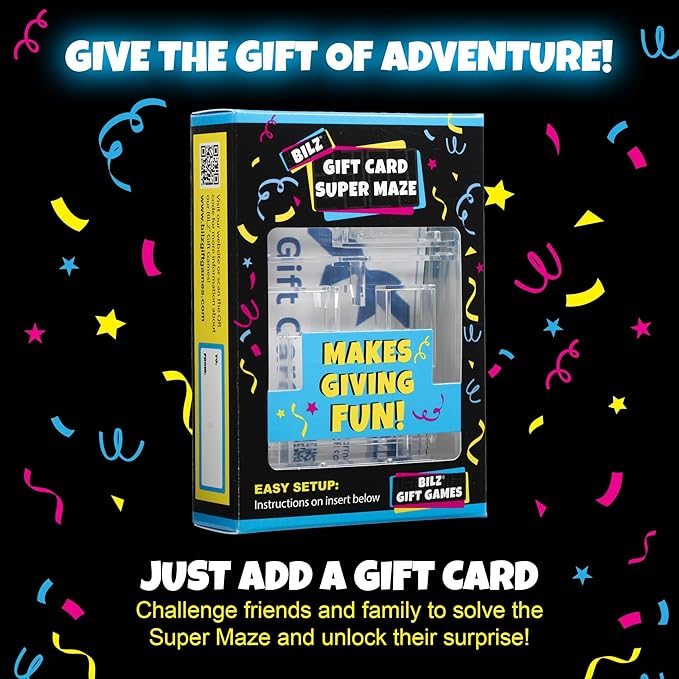 - FUN GIFT CHALLENGE FOR ALL AGES: BILZ Super Maze brings excitement to gifting! Solve the clever maze to unlock the surprise inside. With a thrilling “pop of the drawer” moment when completed, it’s a fun bi-level puzzle game for ages 8 and up. Perfect for graduations, birthdays, Christmas, and special celebrations. The Super Maze turns any gift card, cash (folded), or note into an unforgettable experience!