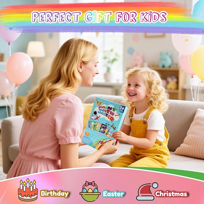 - EDUCATIONAL and FUN: Water coloring book Develop creativity, color recognition, and hand-eye coordination. Our paint with water books for kids provide a healthy and engaging alternative to screens, promoting learning through play,Let kids explore water colors!