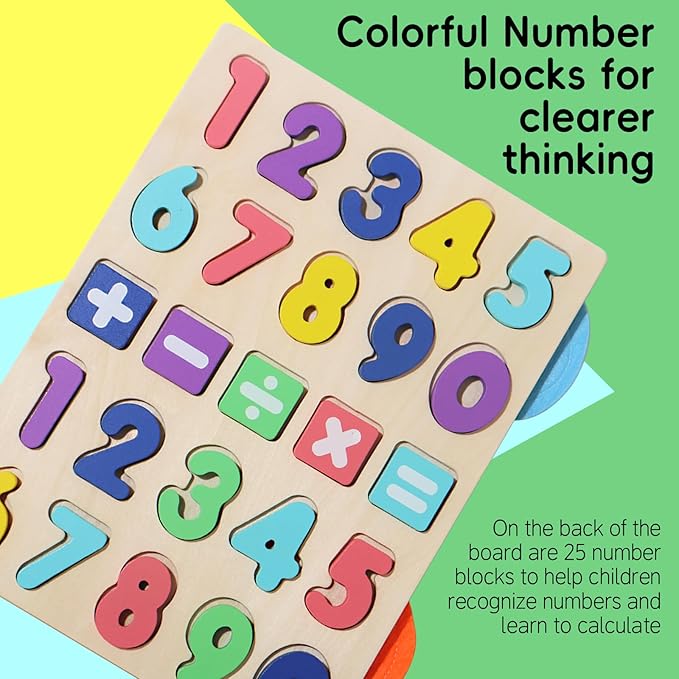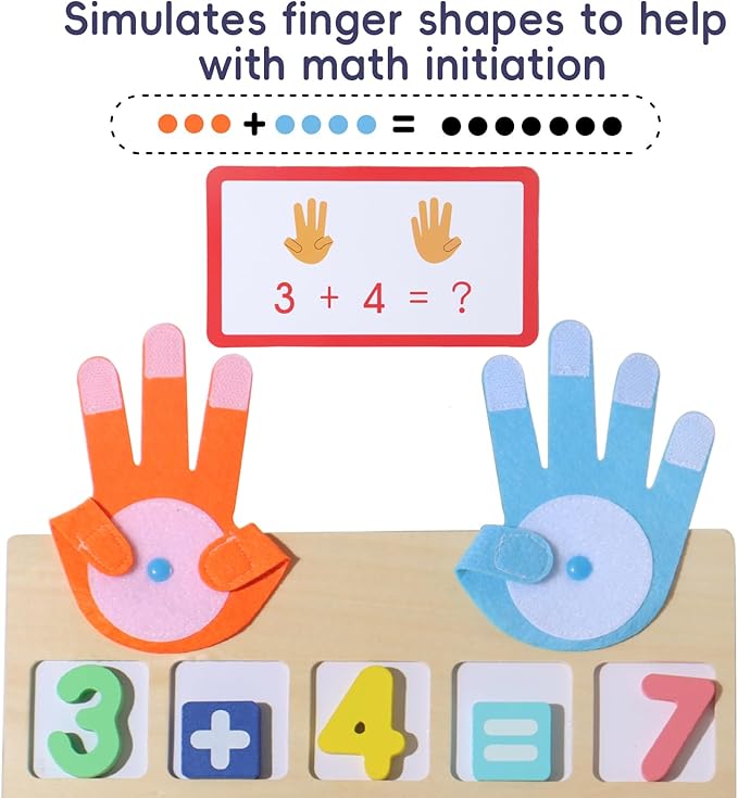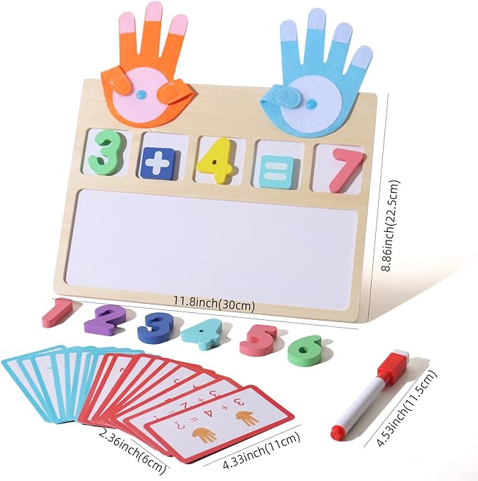 - DOUBLE-SIDED MATH MASTERY: Interactive front panel simulates finger-counting for addition/subtraction (e.g., "3+4=?") + Rear number block board with 25 colorful wooden number blocks, equations, and pattern play.