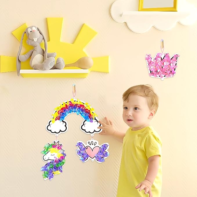- 【DIY Crafts kits for Kids】This poke art and crafts kit includes 700 fabric squares, Star*1,Hearts*2,Unicorn*1,Crown*1,Lollipop*1,Rainbow*1,1Craft cord,2 poke-in sticks,a poke-in pad and an instruction manual.Poke art for kids ages 4-8 – perfect for developing early crafting skills