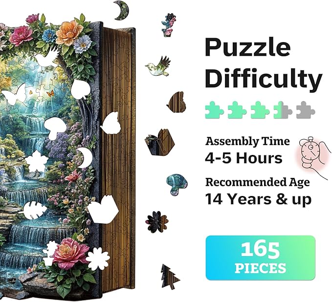 - 【Beautiful Scenes From a Book Wooden Puzzles】Enjoy your leisure time with Jigfoxy’s unique jigsaw puzzle. With 165 pieces, it offers a fun and engaging challenge for puzzle enthusiasts of all ages. It’s the perfect way to relax after a busy day or to bond with family and friends