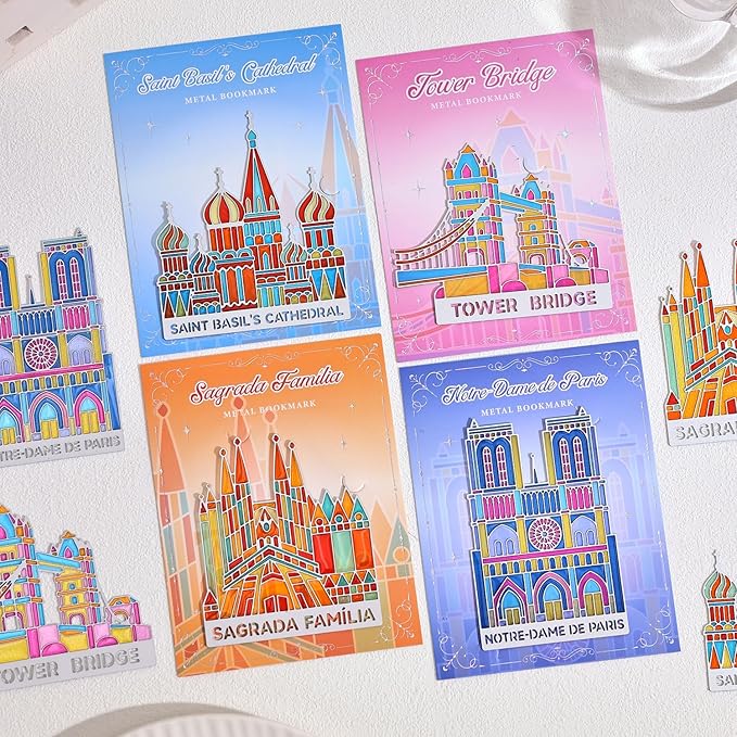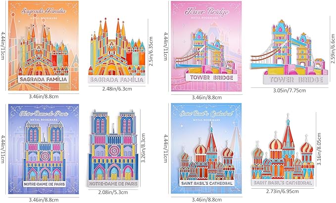 4pcs Metal Bookmarks with Transparent Design, Cute Book Marks for Readers, Aesthetic Book Markers for Kids, Teens, Teachers, Students, Book Accessories Gifts for Book Lovers, Reading Women and Men