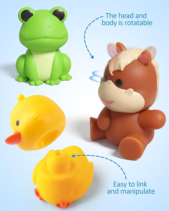 - Fun and Easy to Use Educational Toy: Take the animals apart and let the kids find their halves to match and stack! Farm animals with kid-friendly size and smooth center connector part are easy for toddler to grip and snap them together. Sensory fidget toys and activities not only encourage children to explore and investigate, they also help develop motor skills.