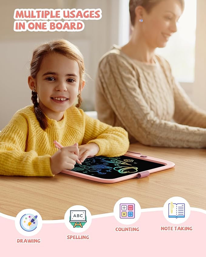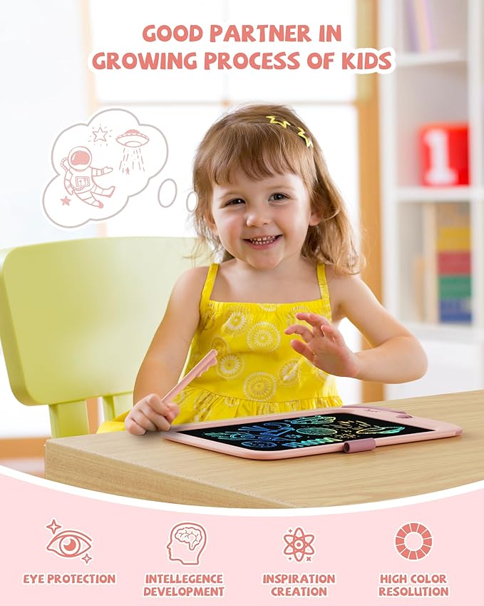 - 【Eye-protecting LCD Writing Board】 Equipped with the latest LCD pressure-sensitive technology and an 10-inch LCD color screen. This toddler drawing board toy is radiation-free and glare-free, ensuring safety and comfort even for extended use.
