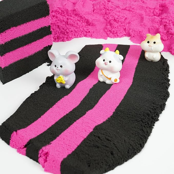 - Imagination & Creativity: The brightly colored sand is easy to shape into any shape and kids can use their imagination and creativity to create all kinds of toy scenes. When kids play with the sand, they can grab, pinch, knead and shape it, which creates a calming effect that helps relieve stress, develop hand-eye coordination, enhance strength, and improve finger dexterity. It is the perfect toy to increase children's playability and stimulate their imagination and practical skills.