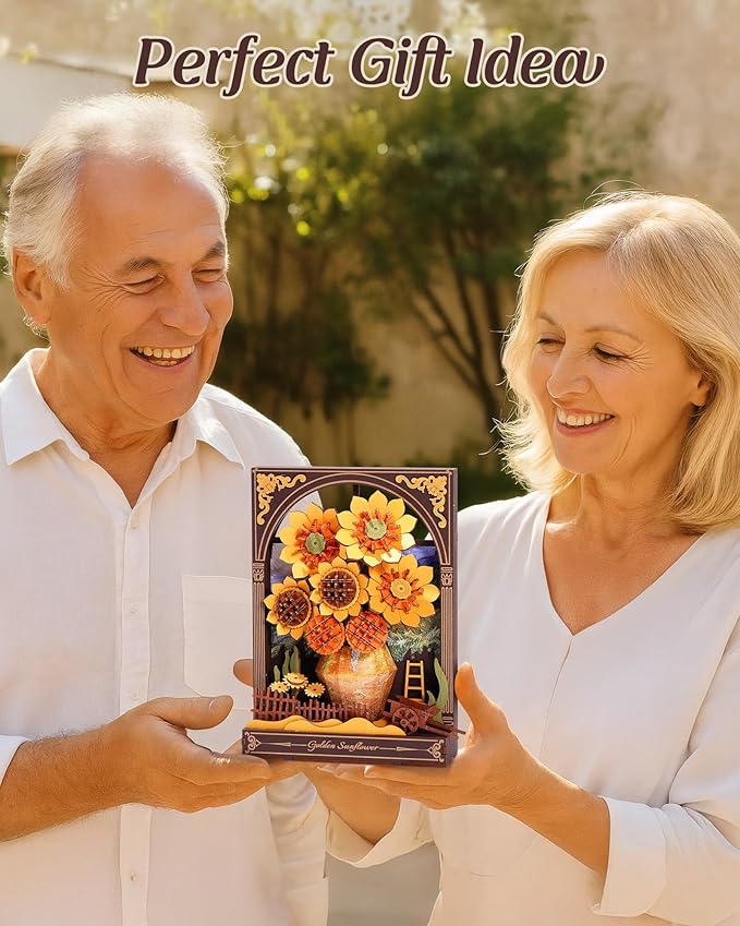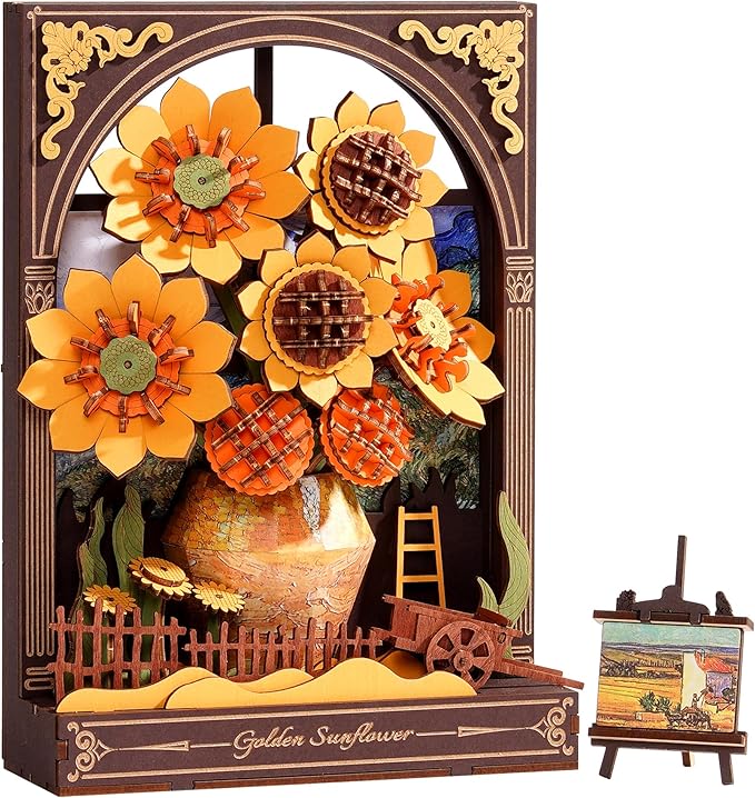 - 【Wooden Sunflower Puzzle】Immerse your space in the glow of a golden sunflower artifact inspired by Van Gogh's iconic masterpiece. Each petal radiates a vibrant LED hue that blossoms with sunlight and warmth even after nightfall, transforming darkness into a gallery of confidence and joy.