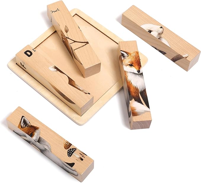 - 【Make Friends with Forest Animals 】Explore friendly forest animals with the Montessori puzzle! It has bright, detailed patterns of fox, rabbit,deer, owl. The wooden puzzle is made up of 5 rectangular pieces, each printed with a different section of the animal's body. The 5 puzzle blocks allow children to arrange different animals—it’s a fun way to learn about forest life!