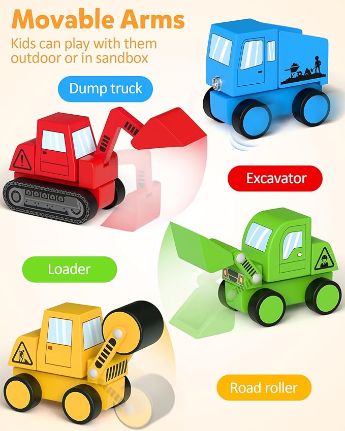 - Fun STEM Building Vehicles Set: 4-in-1 wooden construction toys for boys, it is also a great educational tool for kids. Assembling the engineer truck toys help kids with their motor skills and build spatial awareness and logical thinking. This STEM building toy set provides maximum entertainment and a fun-filled learning experience for kids to play and learn