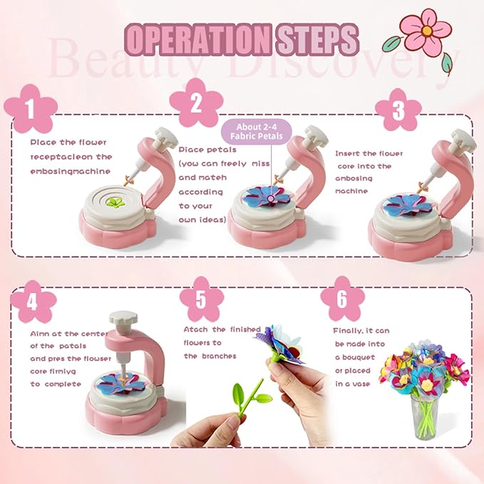 - ๐All in one craft kit --- DIY flower bouquets toys including embossing machine, colorful flower petal, receptacle, core, branch, base, vase and bouquet wrapping paper. Providing countless hours of crafting fun for 4-12 year old girls๏ผ