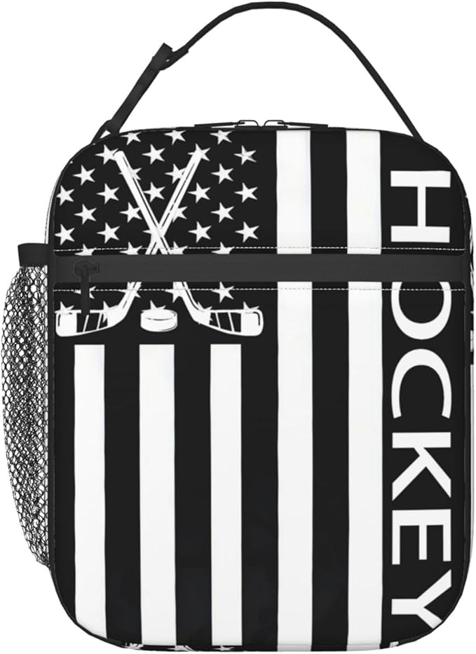 Hockey Flag Lunch Bag for Women Men Adults, Insulated Lunch Box for Work, Sports, Travel, Picnic,Hiking, Fishing, Ice Hockey Theme Lunchbox Gifts