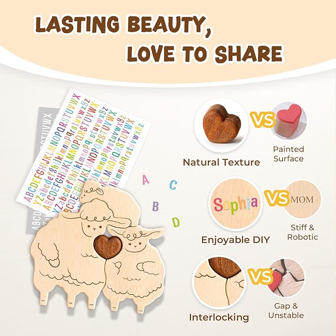 - Perfect for Family Bonding - This puzzle is not only a beautiful decorative piece but also a family games for kids and adults. It’s a great way to spend quality time with your little ones, as they work alongside you to assemble the Sheep family. To make it even more special, the set includes colorful and white letter stickers, allowing you to personalize it with names or meaningful words. Create a unique keepsake while enjoying a fun and interactive bonding experience