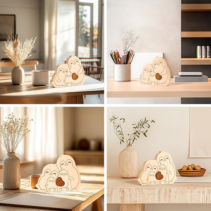 - Personalized Home Decor - Once assembled, the family wooden puzzle stands securely on any flat surface, making it an elegant addition to your home decor. Its interlocking design ensures stability. It can be displayed on a mantelpiece, coffee table, or shelf, adding a touch of warmth and personality to any living room, bedroom, or study. It’s a wooden animal ornament that complements a wide range of home styles