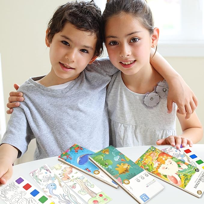 - 【Perfect Travel Toys – Compact and Portable】Each mini watercolor book measures just 7.5 x 3.2x 0.3 inches, designed to fit easily into backpacks, handbags, or carry-ons. A must-have for airplane travel, car rides, camping trips, beach activity, or restaurant entertainment -keeps kids creative and calm on the go