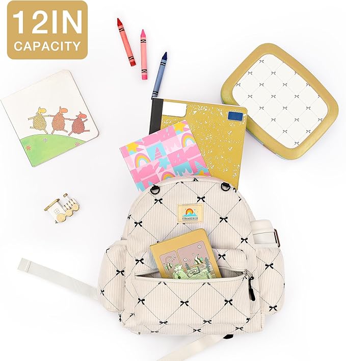 STEAMEDBUN Corduroy Toddler Backpack for Girls 2-4: Kids backpack for Boys Girls - 12 inch Preschool Kindergarten Backpacks - Bow