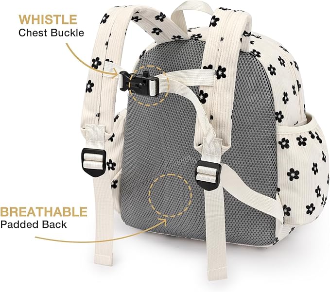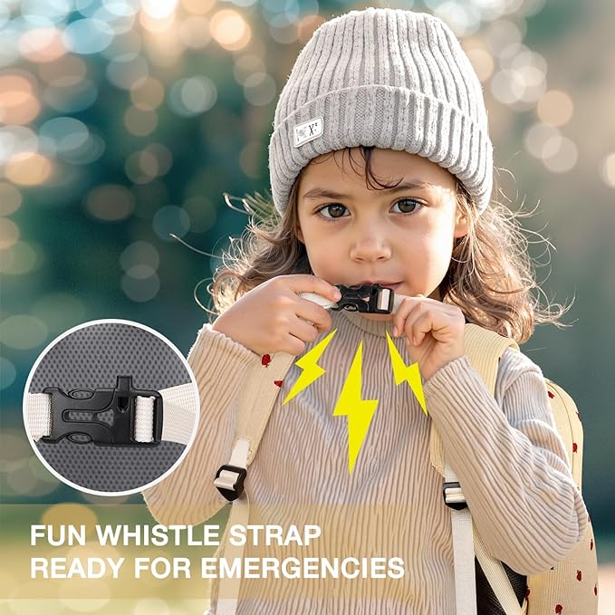 - 【Comfort Meets Safety】Built with breathable padding and ergonomic straps, this toddler backpack reduces pressure on little shoulders; A chest buckle with a built-in whistle adds playful functionality — it’s a fun feature for daily use and could provide help in unexpected situations