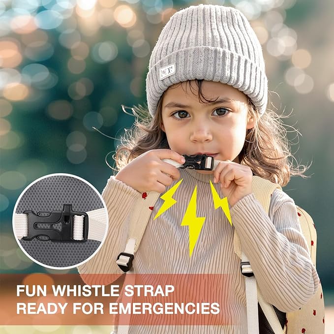 - 【Comfort Meets Safety】Built with breathable padding and ergonomic straps, this kids backpack reduces pressure on little shoulders. A chest buckle with a built-in whistle adds playful functionality — it’s a fun feature for daily use and could provide help in unexpected situations