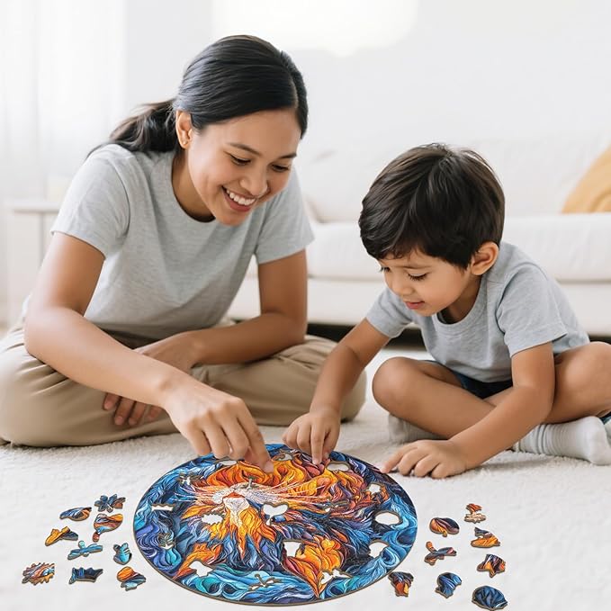 - 【Wooden Puzzles for Adults】A wooden puzzle showcases a cool cat made of flames.The package includes 1 x unique-shaped wooden jigsaw puzzle for adults, 1 x wooden gift box, and 1 x wooden support. Working on a wooden puzzle with friends or family can promote teamwork and communication and provide a fun and relaxing way to spend time together.