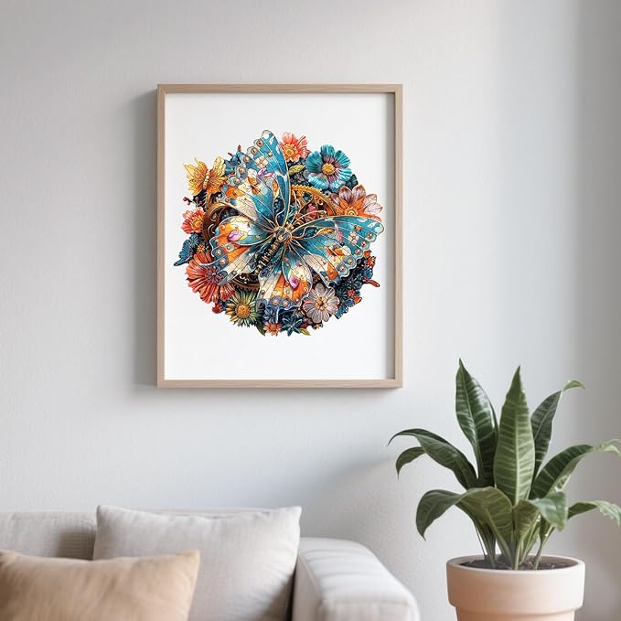Wooden Puzzles for Adults - Mechanical Butterfly Wood Puzzles Adult - Unique Animal Shape Wooden Jigsaw Puzzles for Adults - Birthday Gifts for Puzzle Lovers, Family (11.4 * 11.4in)