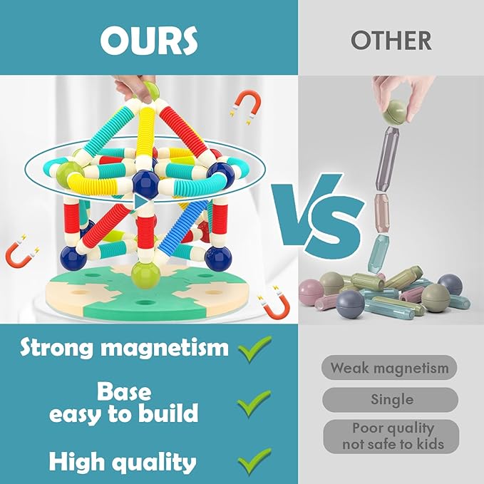 - Grows with Your Kids: From simple shapes to complex structures, this 2 in 1 magnetic pop tubes & balls building toy evolves with your kid’s skills. Ages 3+ start with basic builds, while older kids engineer advanced designs—boosting spatial intelligence & creativity at every stage.