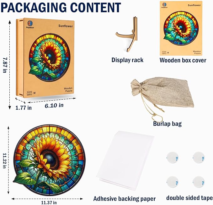 - CHALLENGING WOODEN PUZZLE: Take pleasure in the sunflower wooden jigsaw puzzles. Measuring 15.2"x15.2" (38cm x 38cm) and consisting of 300 pieces, ideal for adults and kids 12+